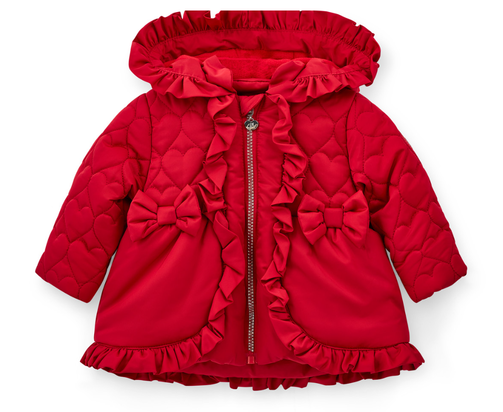 wunderschöne Jacke für kleine Mädchen von Little A in kräftigem Rot mit durchgehender Herzstickerei
