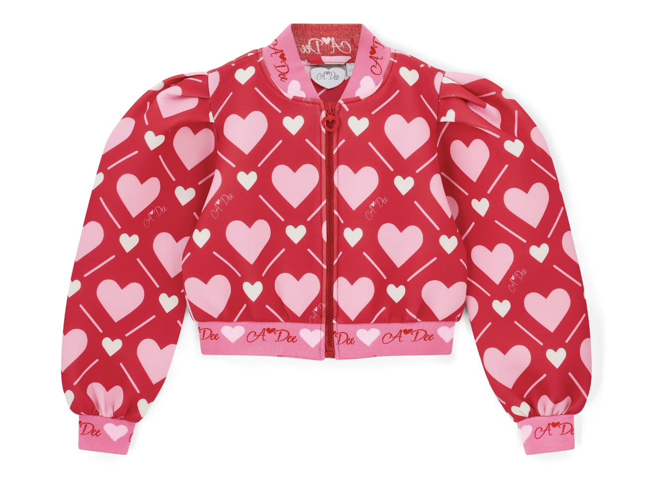 Bomberjacke mit Herzmuster, Puffärmeln und elastischem Bund