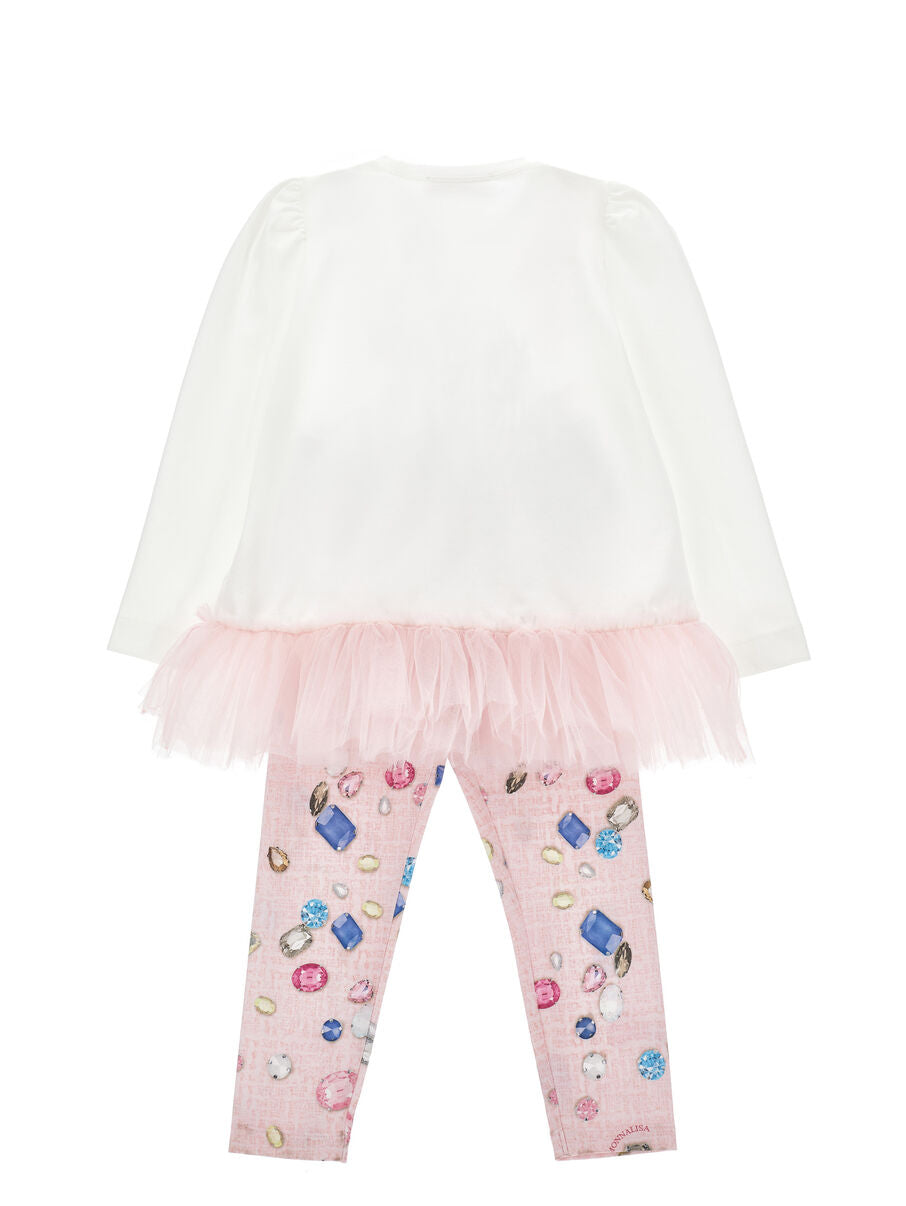 Tunika mit Edelsteinaufdruck und Tüll am Saum dazu passende Leggings mit Edelstein Muster