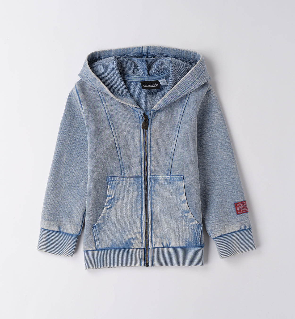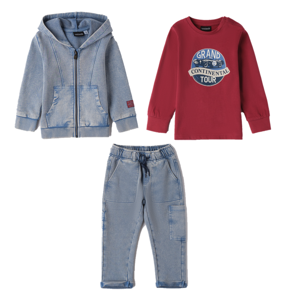 Denim Optik Sweatjacke und Sweathose mit langarm Shirt