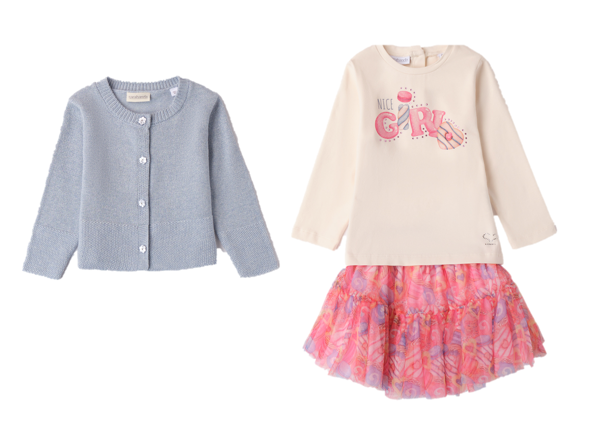 Strickjacke, longsleeve und Tüllrock mit Sußigkeitenmuster